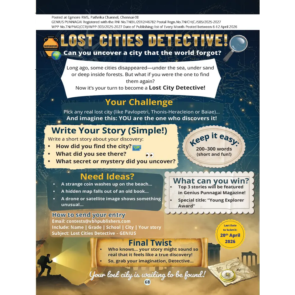 Genius Punnagai is a thought-provoking and inspiring monthly magazine created for teenagers who are eager to explore the world and prepare for the future. It blends knowledge, inspiration and practical guidance to help young readers develop a well-rounded perspective.