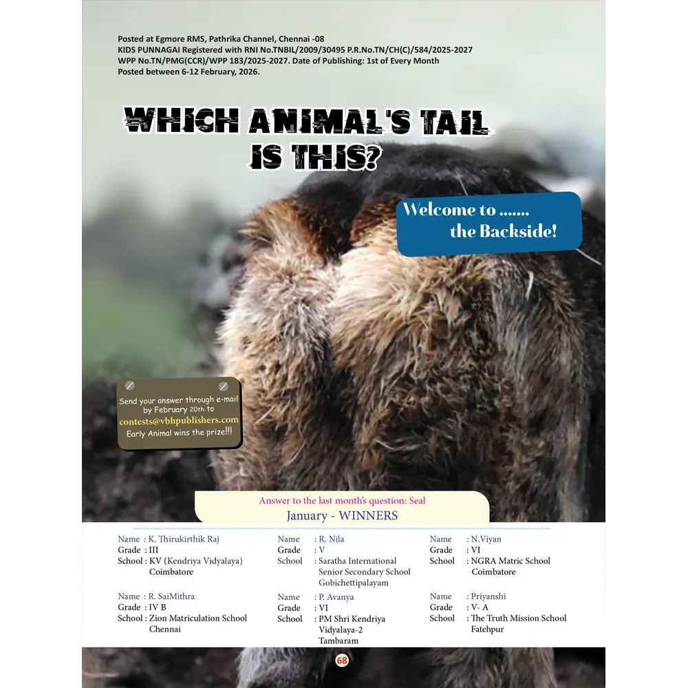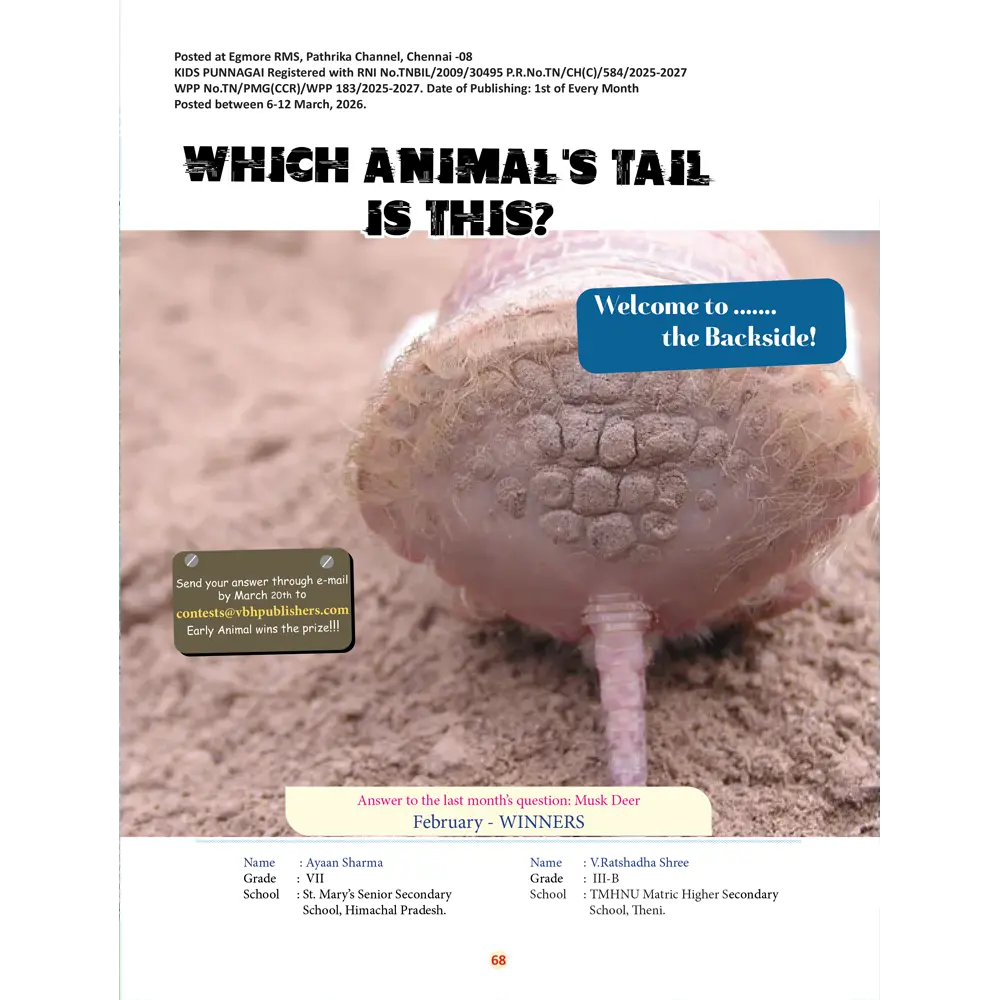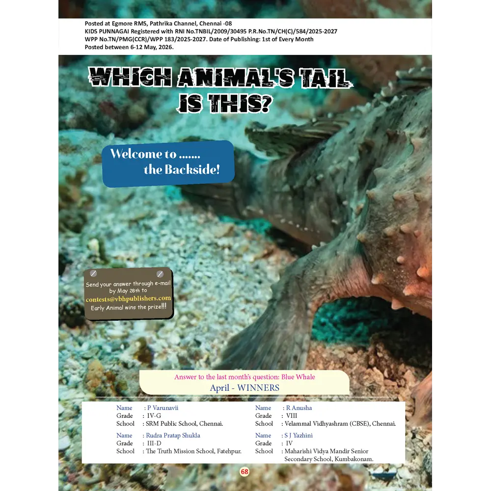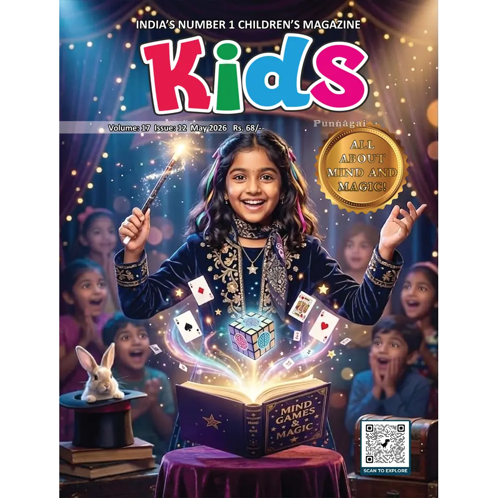 Kids Punnagai is a lively, colourful magazine designed to make learning exciting for children in their pre-teens. Every month, it’s filled with fun facts, science experiments, puzzles, brain teasers, stories, and creative activities that keep young readers hooked from the first page to the last.